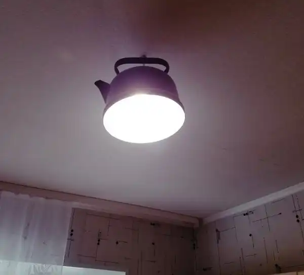 Люстра в кухне из старого чайника