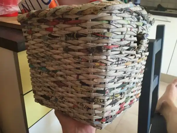 Эта корзина сделана из свернутой газеты