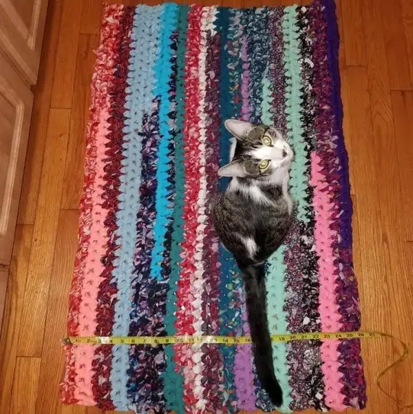 Этот коврик сделан из 11 легинсов, 9 маек, 1 топа и 1 юбки
