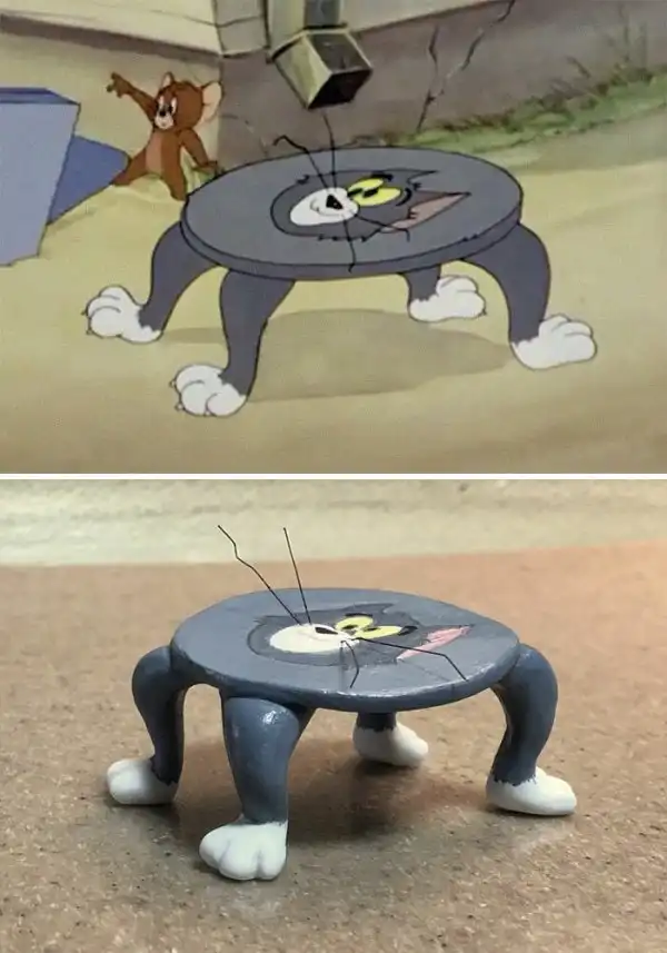 Над приключениями Тома и Джерри смеется уже не первое поколение детей. Коту Тому редко удается поймать Джерри, ведь тот очень ловкий, смышленый и удачливый мышонок. Но в процессе погони страдают оба - то кого-нибудь в лепешку расплющит, то узлом свернет. В общем, скучать им некогда! Именно такие моменты стали источником вдохновения для японского художника Таку Иноуэ.