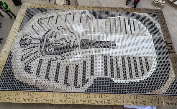В Гизе любители кофе решили соорудить маску Тутанхамона из 7260 стаканчиков кофе. Непонятно кому пришла в голову эта идея, но он явно очень хотел попасть в Книгу рекордов.