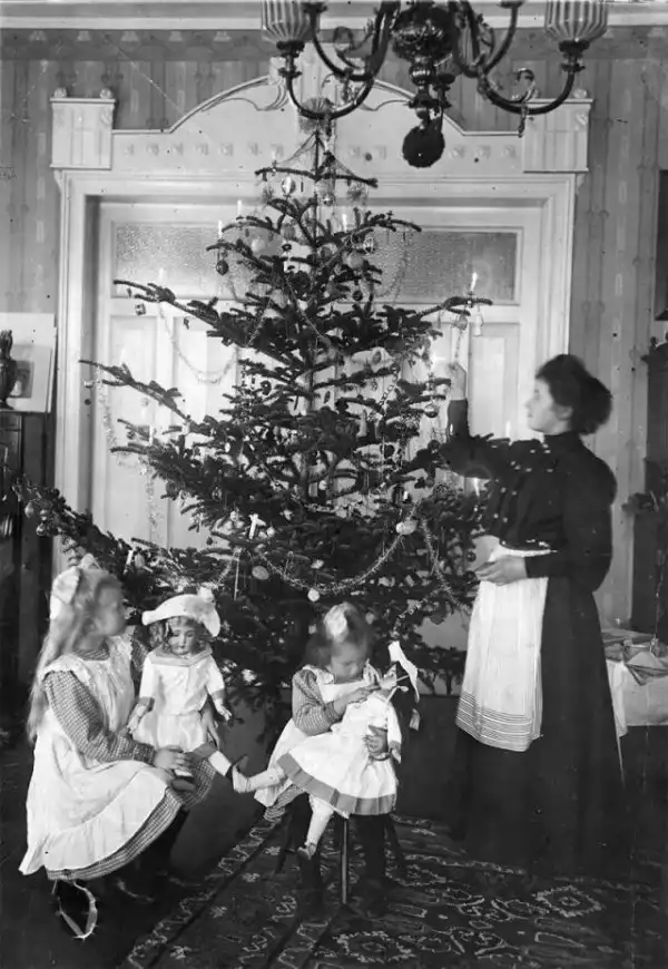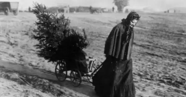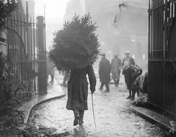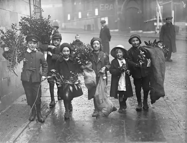 Дети забирают елку с рынка на Ковент-Гарден, Лондон, 1920 год