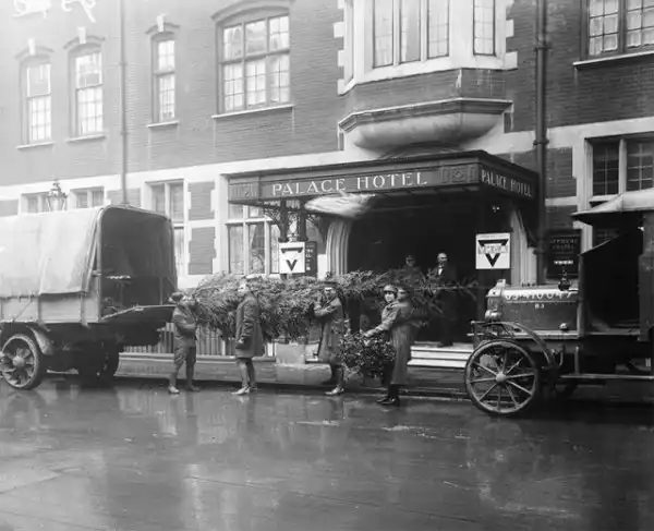 Елки привезли в лондонскую гостиницу Palace, декабрь 1918 года