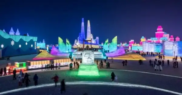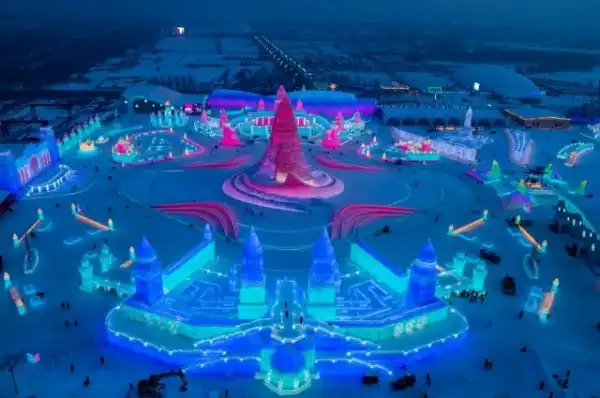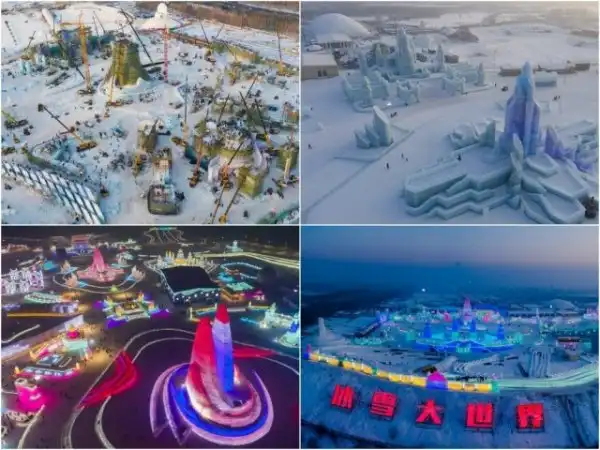 23 декабря в Китае открылся самый большой тематический парк «Харбинский мир льда и снега». Создавать сказочные скульптуры из снега и льда начали еще 7 декабря. На скульптуры мастера израсходовали более 300 тыс. куб. м. льда, создав парк общей площадью более 750 тыс. кв. м. В этом году «Харбинский мир льда и снега» проходит в 21-й раз, впервые его провели в 1999 году.