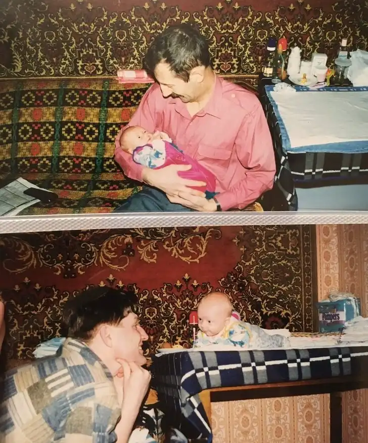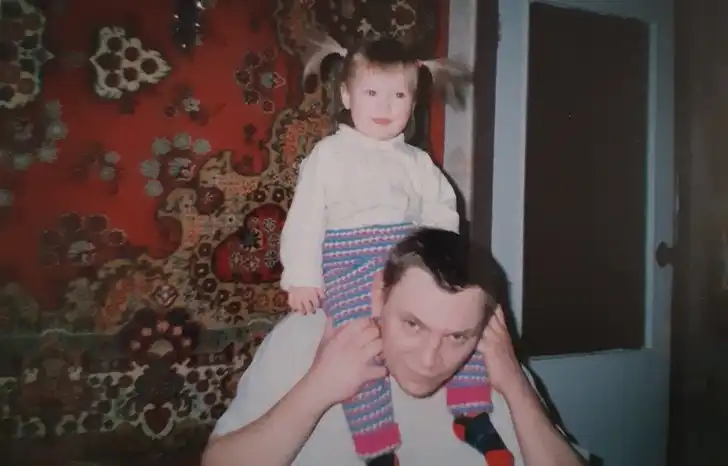 5. «Мама, папа и я на фоне ковра во время жизни в Чехии (на тот момент Чехословакии, город Есеник)»