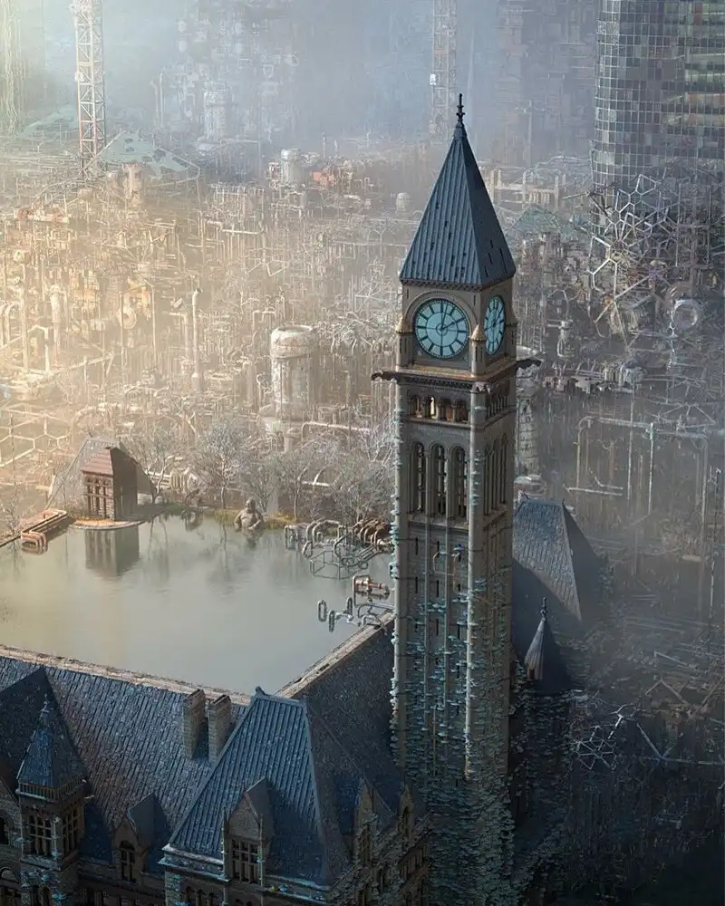 Иллюстратор из Торонто Мэтью Борретт создает городские пейзажи, вдохновляясь любовью к архитектуре и фантастическим антиутопиям. Судя по его работам, человечество ожидает не самое светлое будущее.