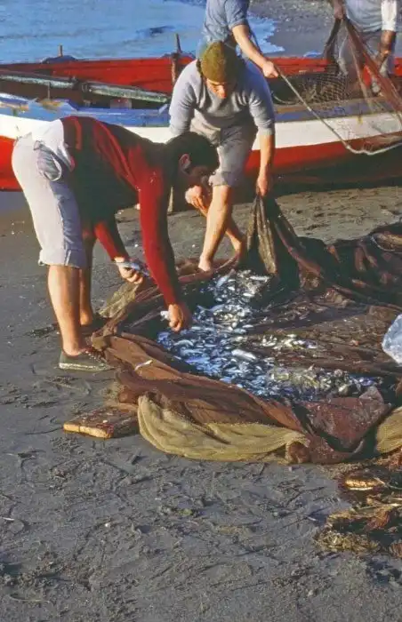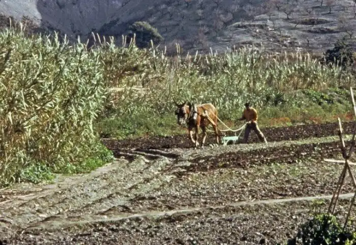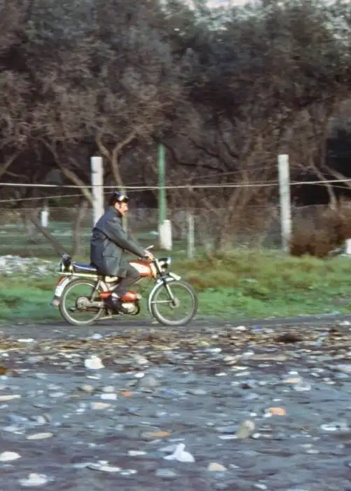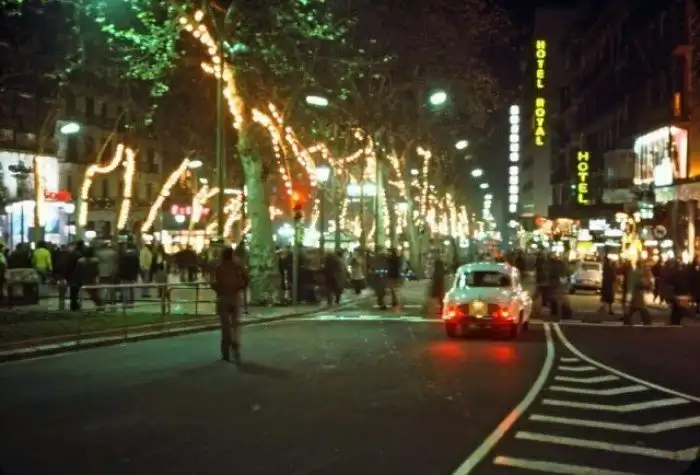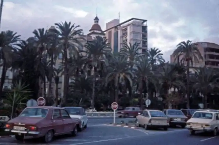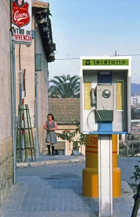 Подарки местному полицейскому - денежная елка и ящики с пивом. Альмуньекар, 1977