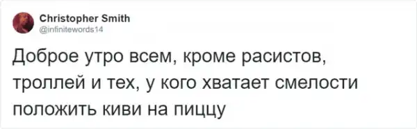 Стеллан подумал, что было бы здорово добавить в пиццу киви. Результатом стало блюдо, от которого бросает в пот даже любителей тех самых ананасов на пицце. Противоречивое кулинарное произведение приготовили в турецкой пиццерии Skottorps Pizzeria,пишет DailyMail. Стеллан Йоханссон пришел в это место потому что тут любят поэкспериментировать с привычными блюдами. После того как швед поделился киви-пиццой, пользователи Сети чуть не сошли с ума. Хотя были и те, кто оценил новый рецепт.
