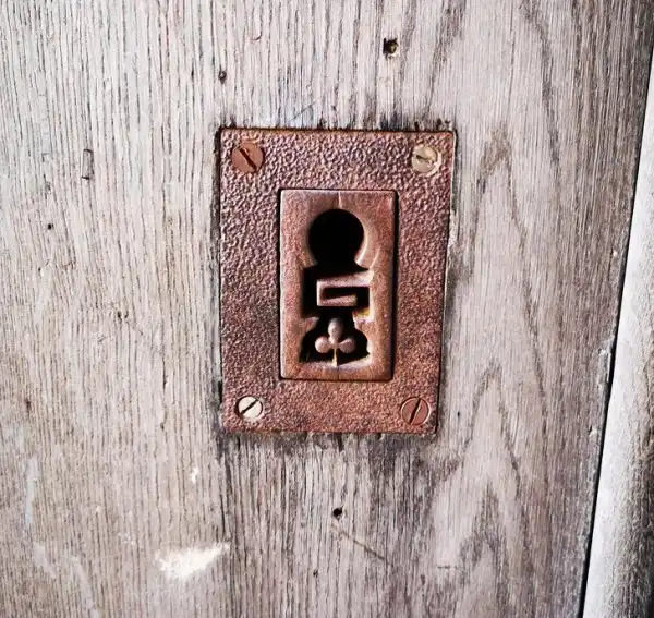 Замочная скважина на боковой двери в Кафедральном соборе во французском городе Бордо
