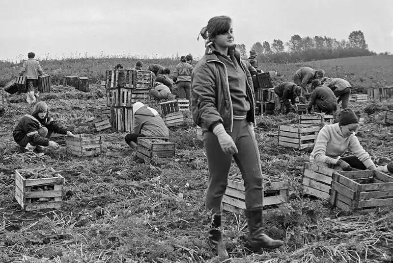 "На картошку" во времена СССР означало помощь колхозникам, а что собирали зависело от региона страны, это была и морковь, капуста, яблоки или виноград…