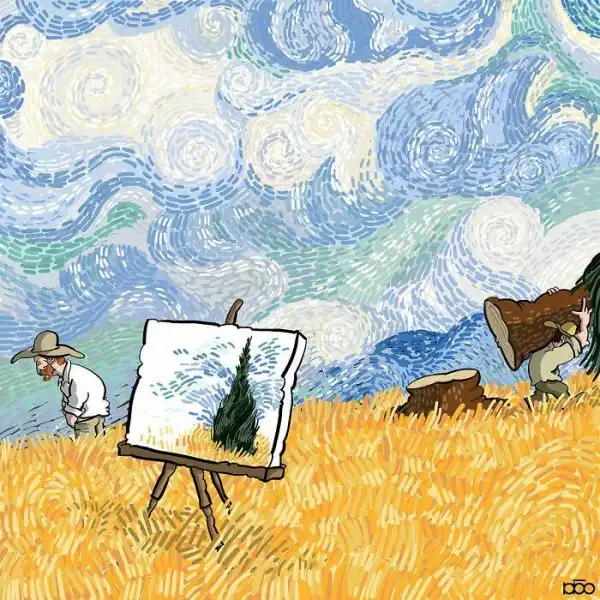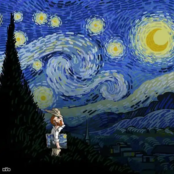 Алиреза Карими Могаддам - иллюстратор и карикатурист из Ирана, ныне живущий в Лиссабоне. Один из любимейших художников Могаддама - Винсент Ван Гог. Серия фантазийных иллюстраций "Жизнь Ван-Гога" - дань этой любви. По словам автора, жизнь этого замечательного художника была трудной и горькой, но основанной на красоте, счастье и надежде на будущее.