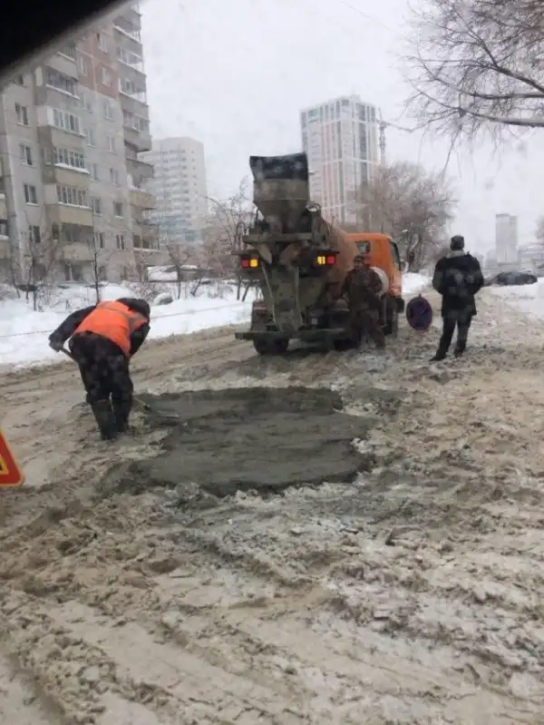 О том, как в России ремонтируют дороги, можно слагать целые легенды. В Новосибирске, по старой традиции, работники укладывают бетон прямо в снег. Как и всегда, местные жители не могли пройти мимо и не сфотографировать рабочий процесс, который происходил на улице Демьяна Бендного. Как пошутили в соцсетях, "зачем чистить снег, когда можно поверх него проложить новую, чистую дорогу?".