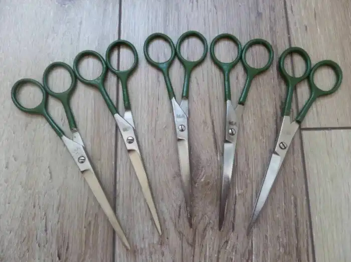 Встретить такие металлические ножницы с ручкой зеленого окраса можно было в каждом доме. Резать такими ножницами можно было не только бумагу, но и ткань.