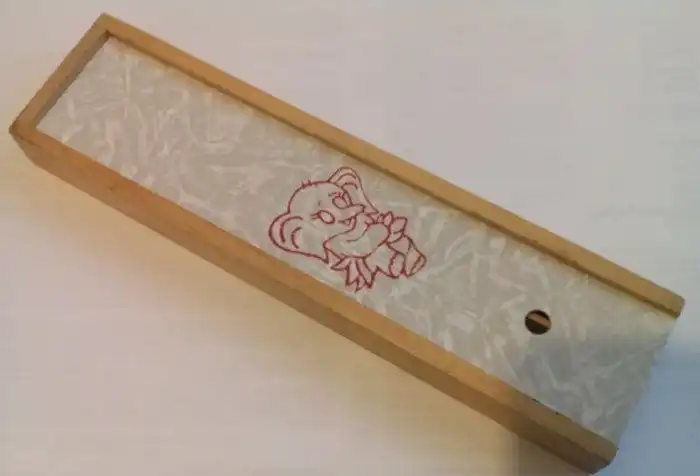 В отличие от собрата из пластика, деревянный пенал был более вместительным. Сюда помимо ручки и карандаша можно было уместить еще линейку и ластик. Крышка была выполнена из пластика, и приходила на помощь, если нужно было прочертить ровную линию, а ничего подходящего для этой цели под рукой не оказалось.