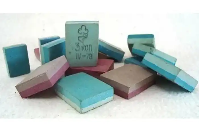 Что касается ластика, то его качество оставляло желать лучшего. После его использования на бумаге оставались неряшливые пятна. Для того, чтобы резинка стала мягче, советские граждане вымачивали ее в керосине.