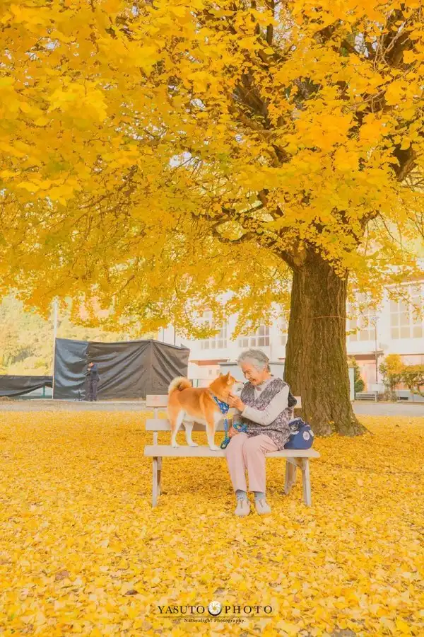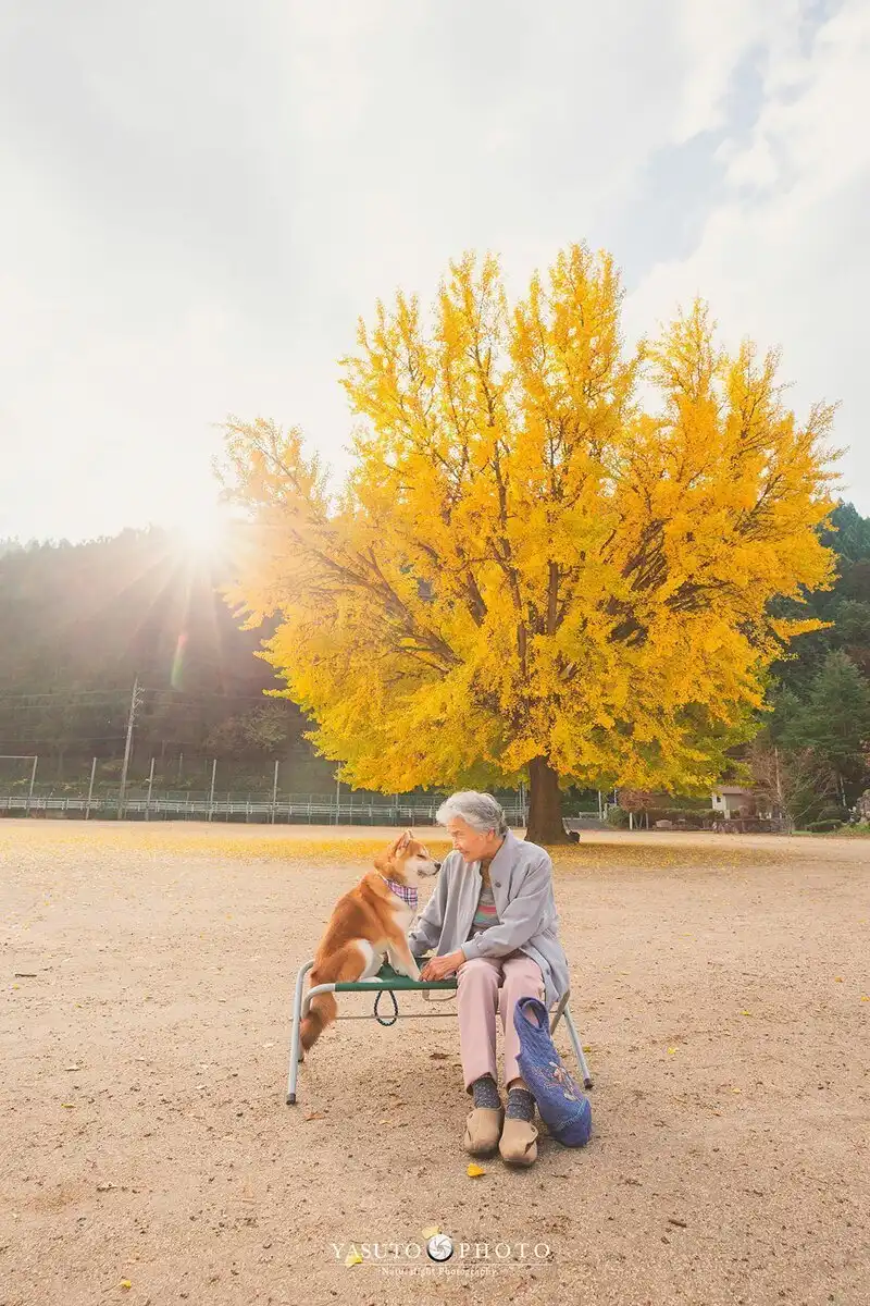 Ясуто постарался запечатлеть дружбу между его бабушкой и её собакой в разные времена года. Так что второй план на всех снимках невероятно яркий, отчего смотреть фотографии одно удовольствие.