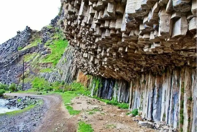 Это результат застывания базальтовой лавы, состоящей из диоксида кремния и оксидов металлов. Когда такая лава отвердевает, часто образуются полигональные формы.