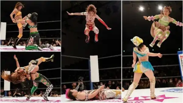 Компания World Wonder Ring Stardom занимается организацией боев и соревнований по реслингу в Японии. На днях подобные соревнования прошли на арене Коракуэн в Токио. Дамы мутузили друг друга, выполняя впечатляющие акробатические этюды. Конечно это больше шоу, чем серьезная борьба, но выглядят соревнования очень эффектно и зрелищно.