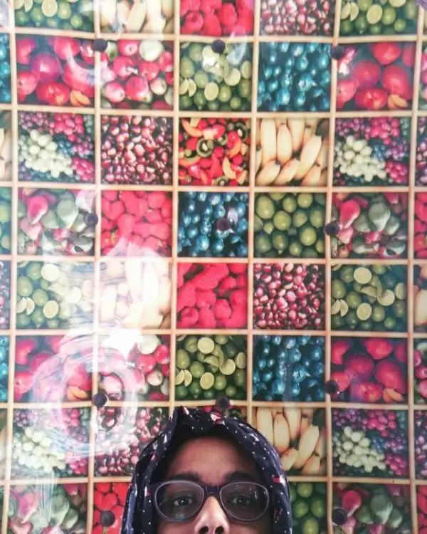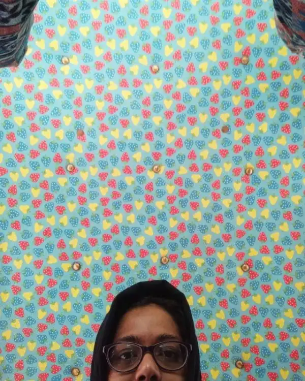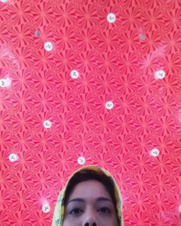 «На фотографиях обязательно есть половина моего лица и... впечатляющий фон, который может оказаться с каким угодно рисунком: от множества фруктов (дыни, киви, а может быть, ананасы), обоев с цветочным принтом, ярких геометрических фигур до приклеенных пластиковые цветов, бабочек или самодельных вертушек», — рассказала журналистка изданию Insider