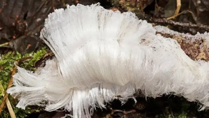 Ледяные волосы образуются на территории между 45 и 55 градусами северной широты. Они вырастают под покровом ночи и быстро исчезают в лучах солнца. Сами кристаллы льда образуются при температуре ниже нуля, а вот в «волосы» их превращает грибок, известный как Exidiopsis effusa. Действие гриба заключается в том, чтобы лед образовывал тонкие волоски диаметром около 0,01 миллиметра и сохранял эту форму в течение многих часов при температурах, близких к 0°C.