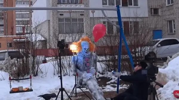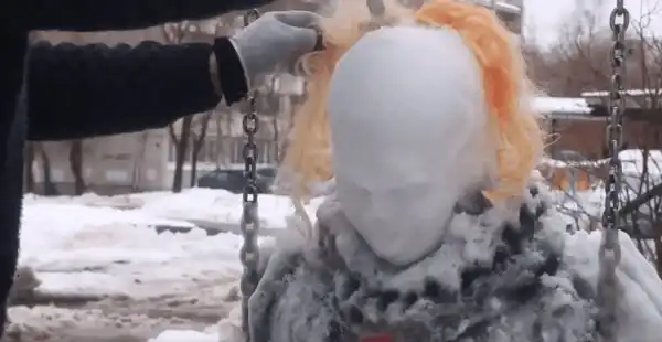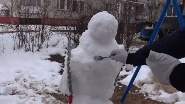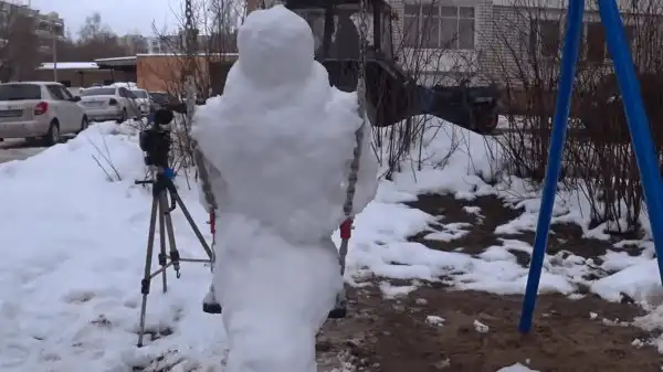 Процесс работы Александр снимал на камеру, а затем выложил в YouTube. Давайте посмотрим, как он создавал страшного снеговика.