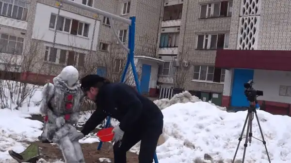 Художник Александр Савский из города Саров решил украсить детскую площадку. Снега много, так почему бы не слепить снеговика? Правда, снеговичок получился очень жутким. Он потратил на работу целый день, но результат точно того стоил. Давайте псмотрим.