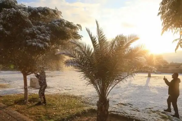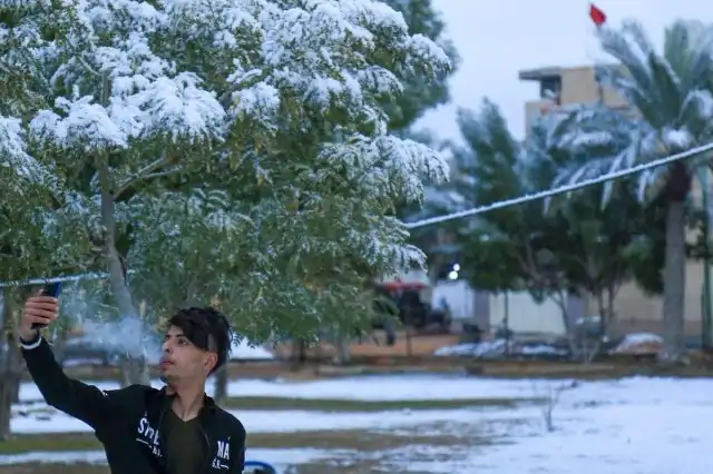 Накануне в Багдаде пошел снег. Последний раз это природное явление было здесь в далеком 2008 года, а до этого его не видели здесь почти 100 лет. Многие багдадцы были удивлены этому, поэтому выбежали на улицы и стали лепить снеговиков, играть в снежки и радоваться зиме. Пальмы в снегу смотрятся особенно эпично!