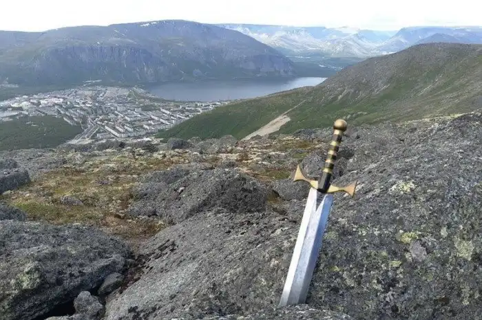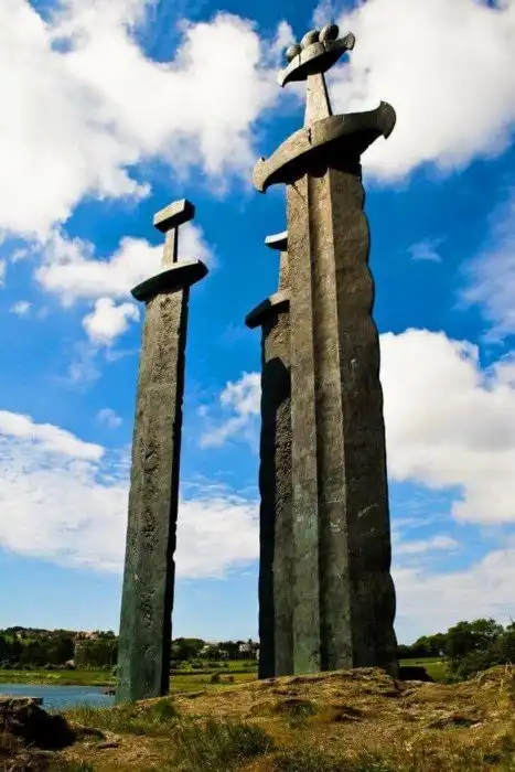Эти мечи, установленные глубоко в камне, ознаменовывают собой историческую битву при Хафрс-фьорде, которая произошла в 872 году.