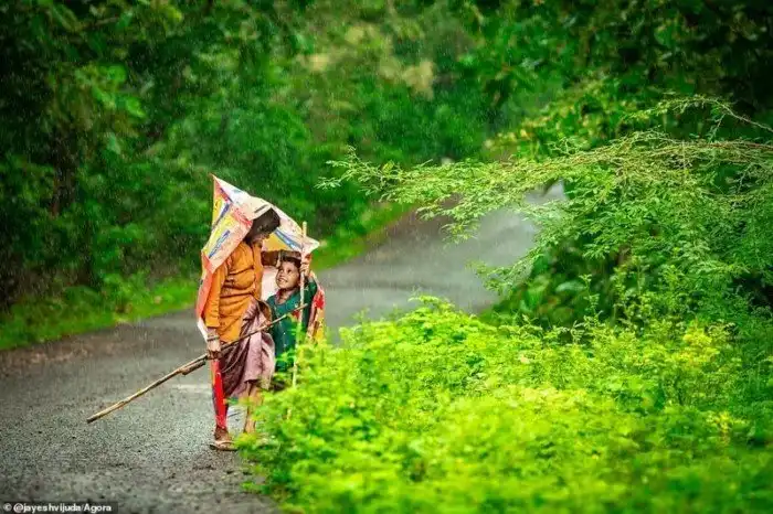 Мать и ребенок под дождем. Автор - @jayeshvijuda, Индия