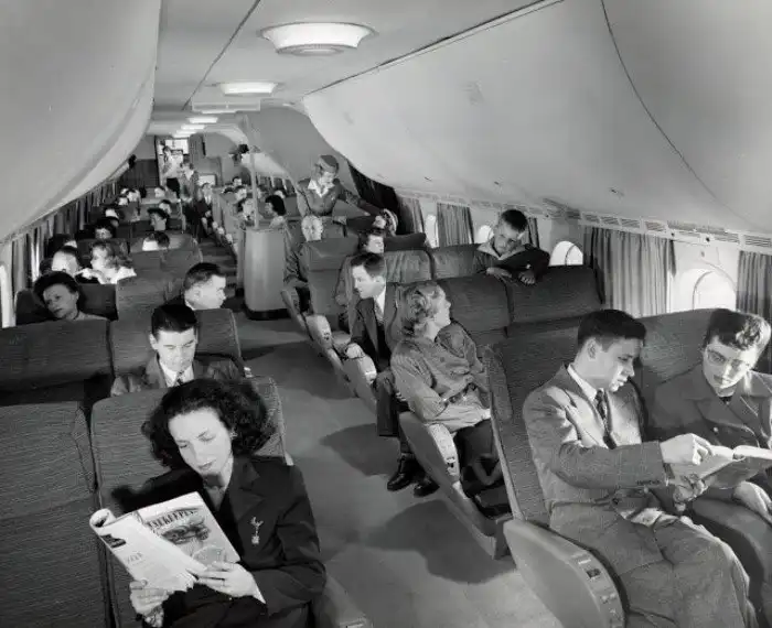 В свой первый коммерческий полет Boeing 377 Stratocruiser отправился 8 июля 1947 года. Самолет был объявлен самой быстрой и комфортабельной воздушной машиной своего времени. У лайнера были две палубы, при этом главная палуба вмещала до 100 пассажиров, и еще 14 могли разместиться в гостиной зоне на нижней палубе. Обычно в машине находились от 63 до 84 пассажиров при обычном размещении или 28 пассажиров с лежачими местами.