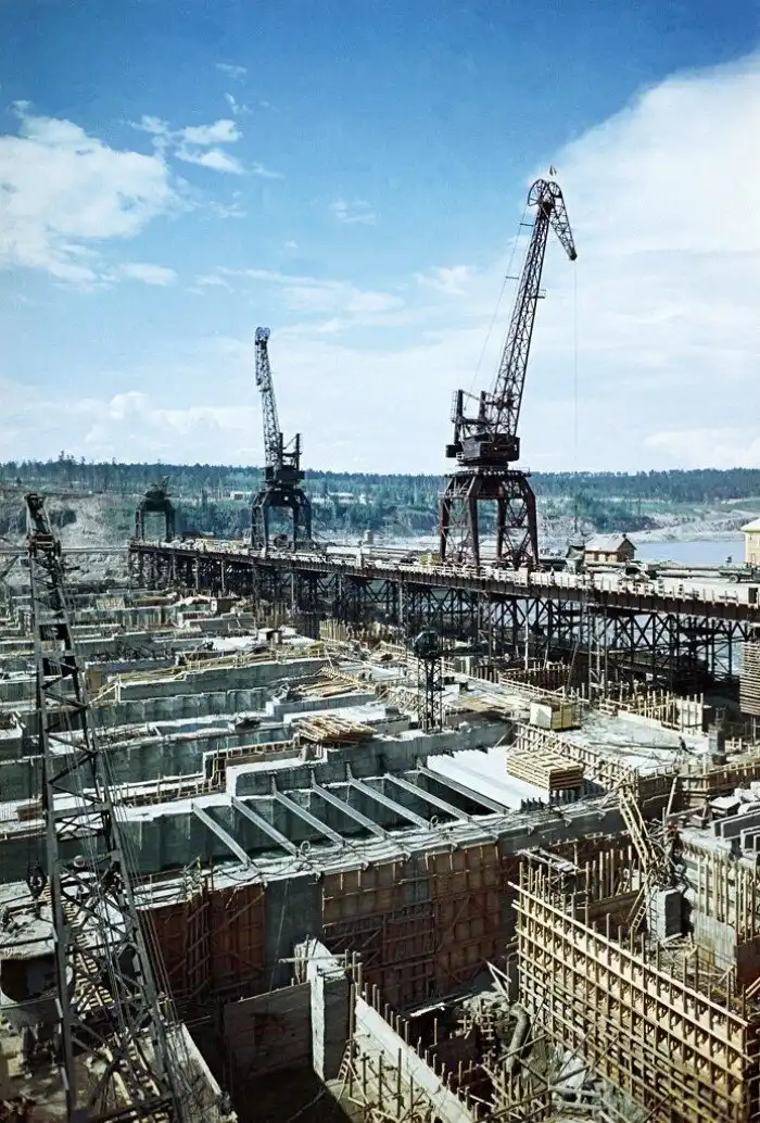 15. Панорама строительства водосливной плотины Братской ГЭС, сентябрь 1959, Михаил Трахман:
