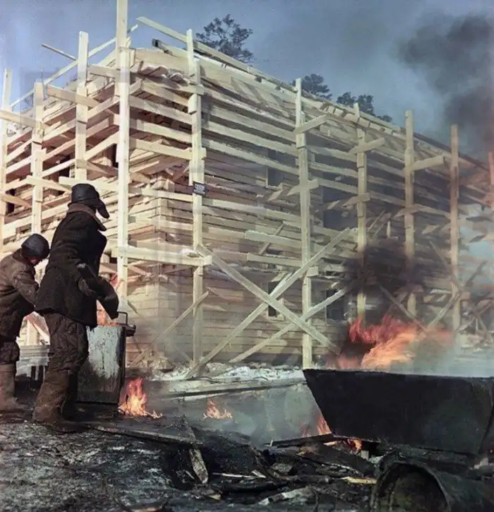 16. Братск Строительство лесопромышленного комплекса Мороз -50 градусов, 1959: