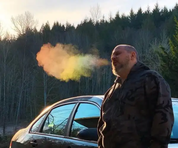 Мужчина дышит радугой