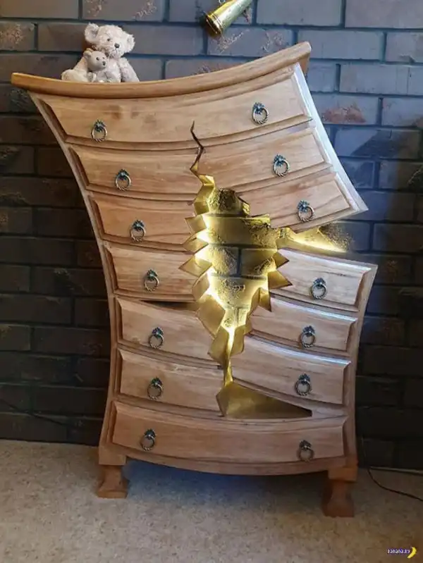 Вот чудесная история Хэнка из Новой Зеландии, который проработал миллион лет (53 года) на мебельном производстве, делая там одинаковые серийные “изделия”. Уйдя на пенсию чтобы не скучать, начал делать у себя в гараже “разбитые” комоды. Просто для души, чтобы не скучать.