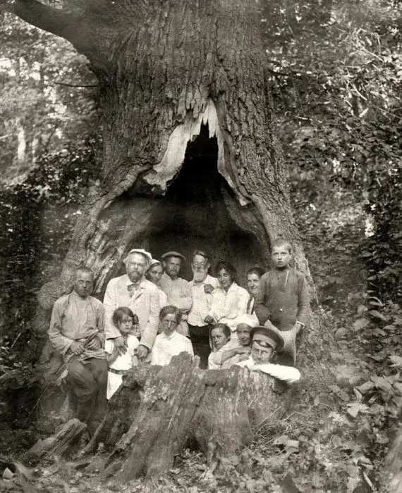 Владимир Иванович Вернадский с родственниками и друзьями на даче в дупле дерева, июнь - август 1910 года, Полтавская губерния