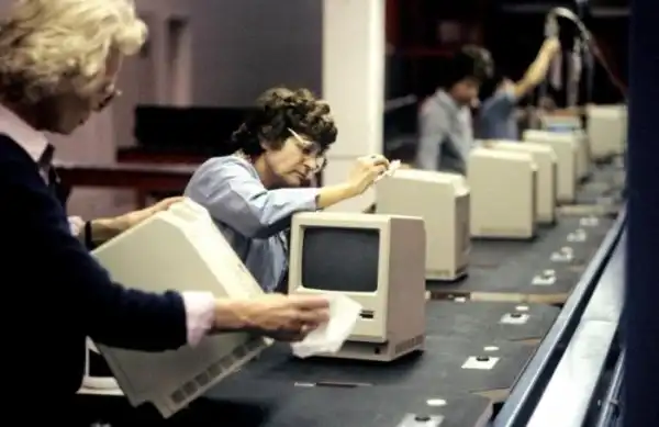 Сборка моноблоков Apple на заводе фирмы, Купертино, штат Калифорния, 25 января 1984 года