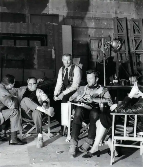 Серджио Леоне, Ли Ван Клиф и Клинт Иствуд на съемках фильма "На несколько долларов больше", 1964 год, Испания