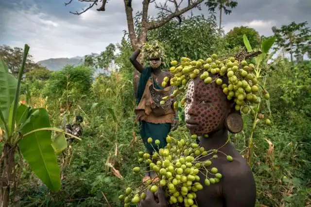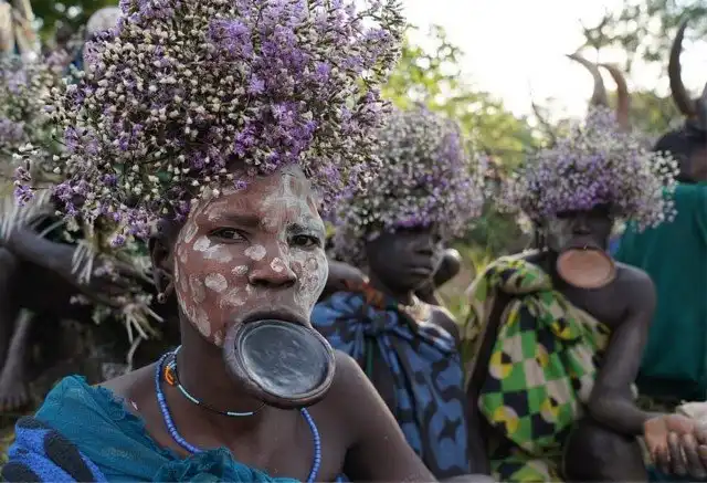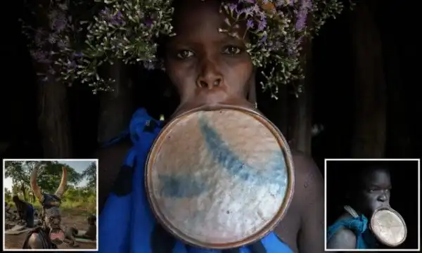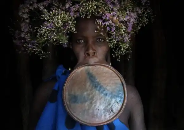 Племя Сури обитает в горах Великой Рифтовой долины на равнинах юго-западной Эфиопии в Африке. У женщин племени удаляют нижние зубы и прокалывают, а затем растягивают губы, чтобы вставить пластины. Чем больше тарелка, тем больше коров отец девушки может потребовать в приданое, когда его дочь выходит замуж.
