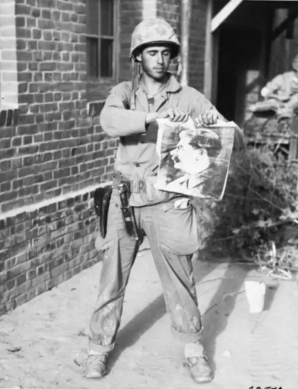 Морпех США рвёт портрет Сталина. Сеул, сентябрь 1950