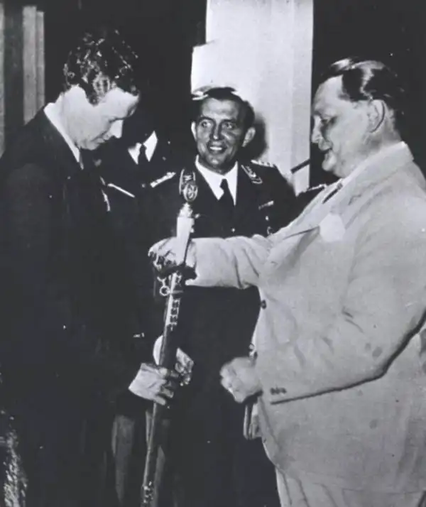 Герман Геринг вручает орден Германского Орла Чарльзу Линдбергу, Германия, октябрь 1938 года