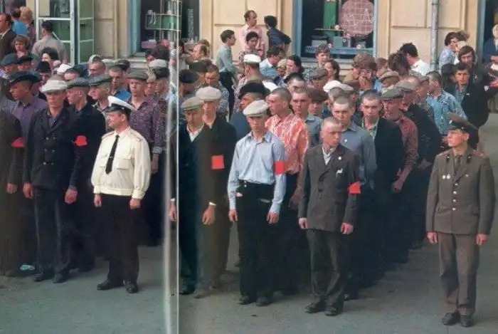 Офицеры армии и флота замерли во главе колонн: город провожает призывников с оркестром и торжественными речами