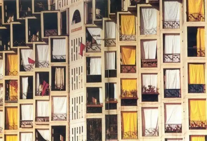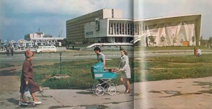 Жилые здания в кубистском стиле возвышаются над улицами восстановленного Ташкента - крупнейшего советского города к востоку от Урала