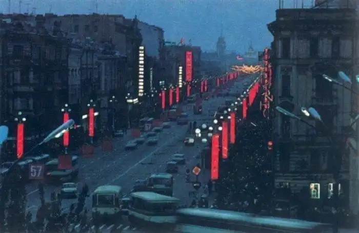 Ленинград. Невский проспект украшен по случаю 7-го Ноября, очередной годовщины революции 1917 года
