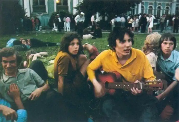 Белые ночи в Ленинграде. Группа студентов отмечает выпускной