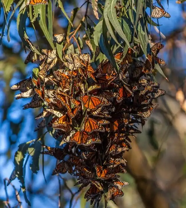 Бабочки-монархи ежегодно перелетают на юг. Их стаи так велики, что на одном дереве могут отдыхать до 100 тыс. особей.