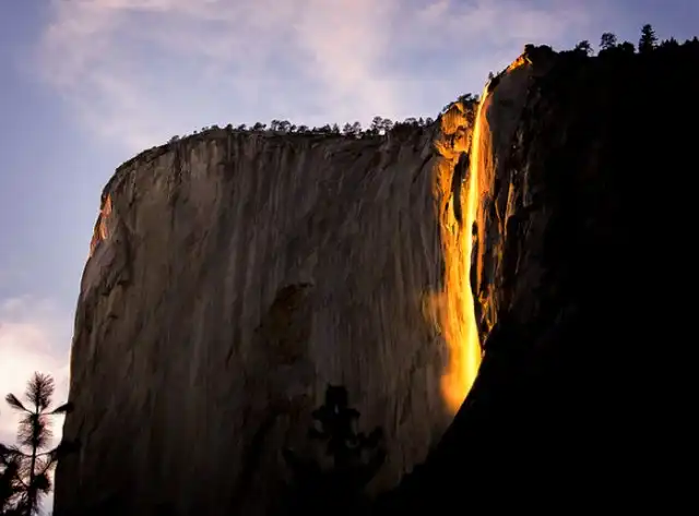 Пыльца светится в лучах заходящего солнца. Водопад в парке Йосемити.