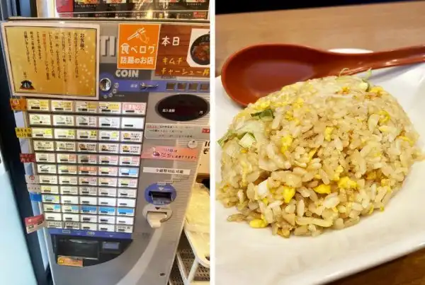 Еще в Японии в автоматах можно купить полноценный обед. Например, жареный рис и вонтоны.