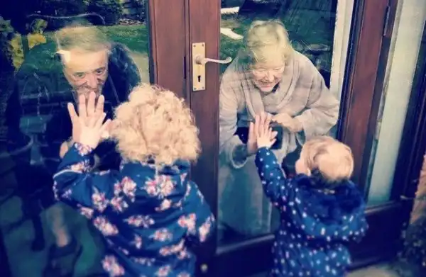 Внуки встретились с дедушкой и бабушкой, но не стали подходить близко, потому что пожилые люди находятся в зоне риска