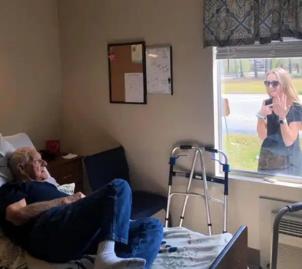 Внучка рассказывает дедушке в больнице, что ей сделали предложение.