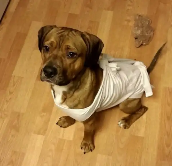 Женщина сделала футболку для собаки из старой простыни